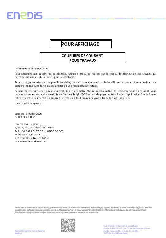 COUPURES DE COURANT POUR TRAVAUX