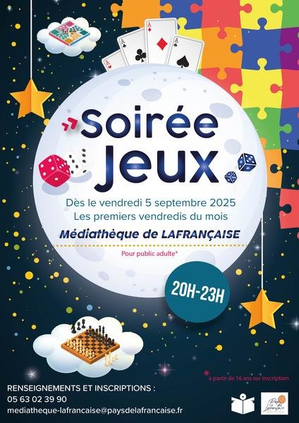 Tous les premiers vendredis du mois, venez tester les jeux de la p'tite ludo à la Médiathèque de Lafrançaise.