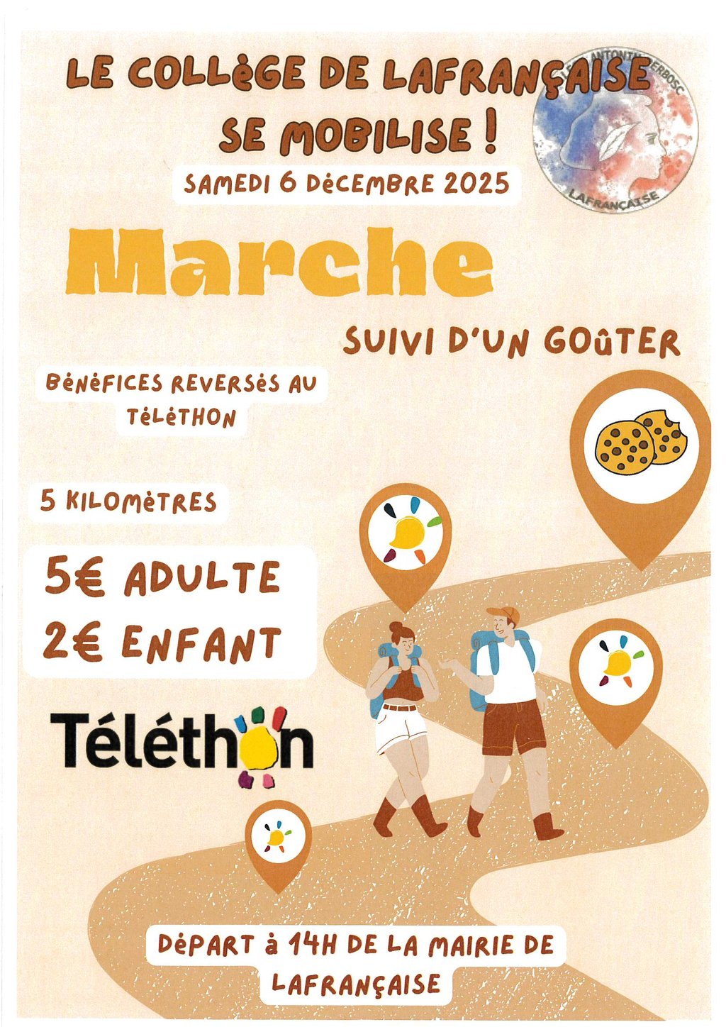 Participation : 5€ pour les adultes / 2€ pour les enfants - Reversés au téléthon