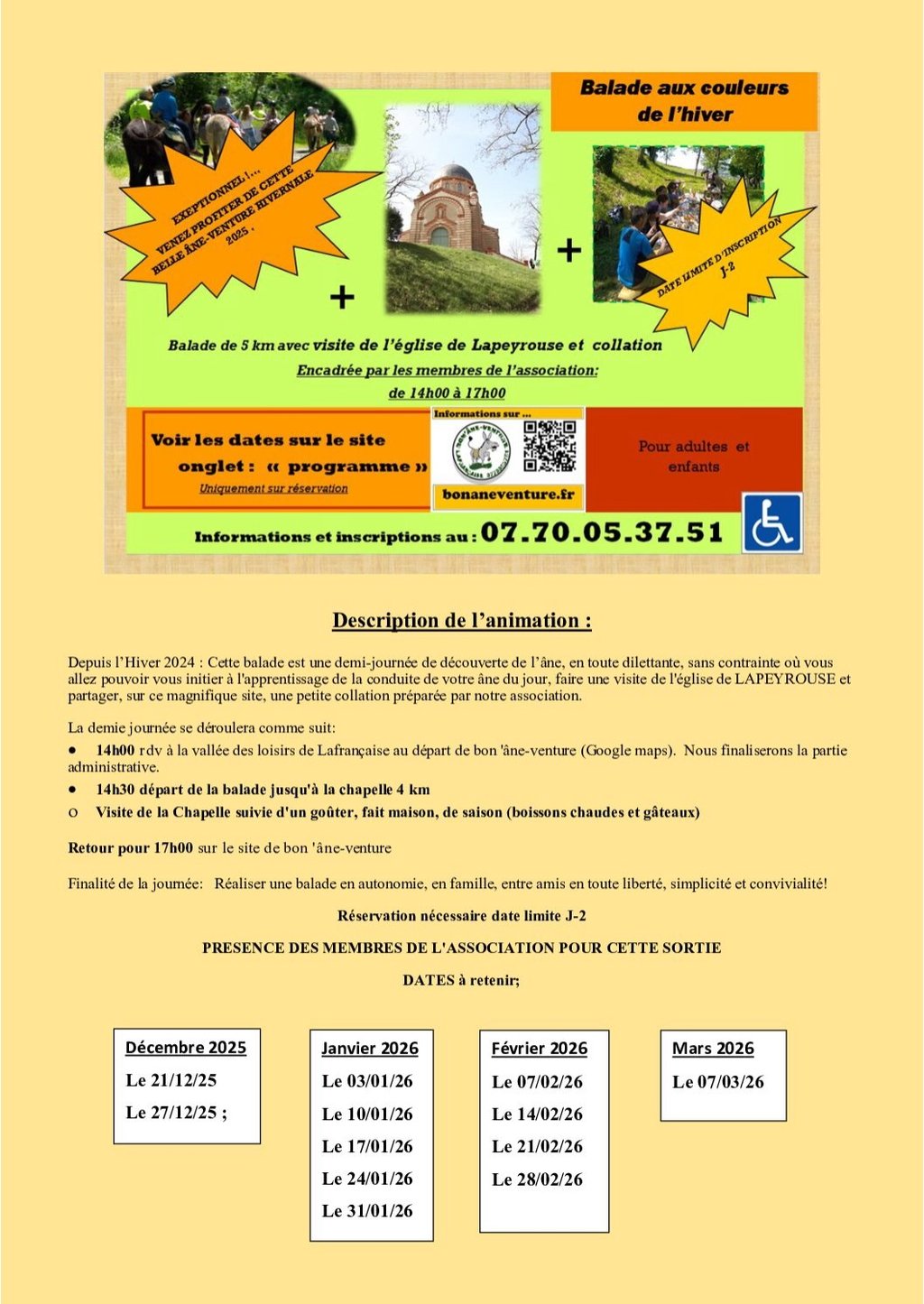 4 km au pas de l'âne avec visite de l'église de Lapeyrouse et goûter