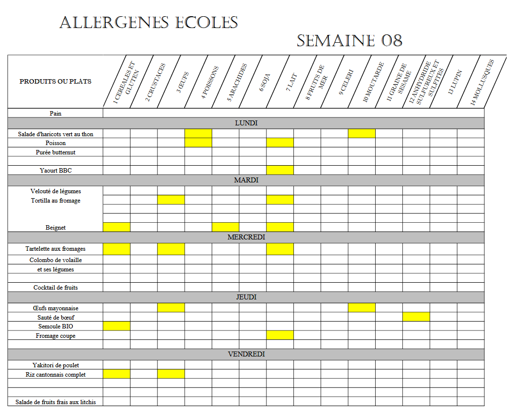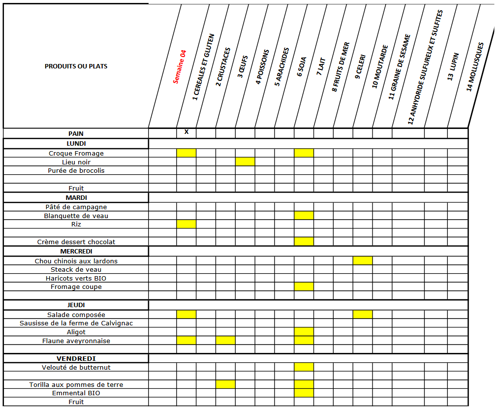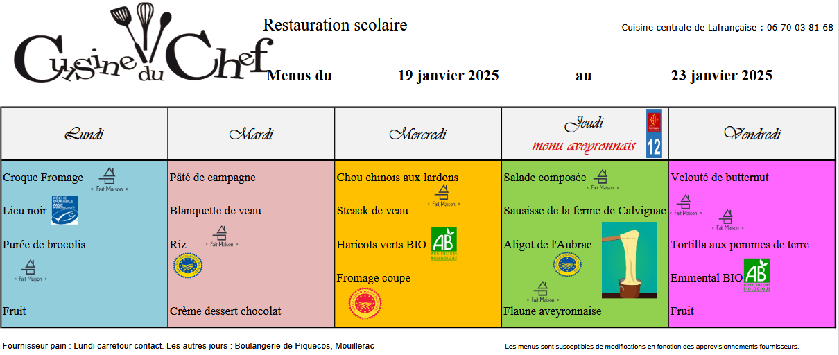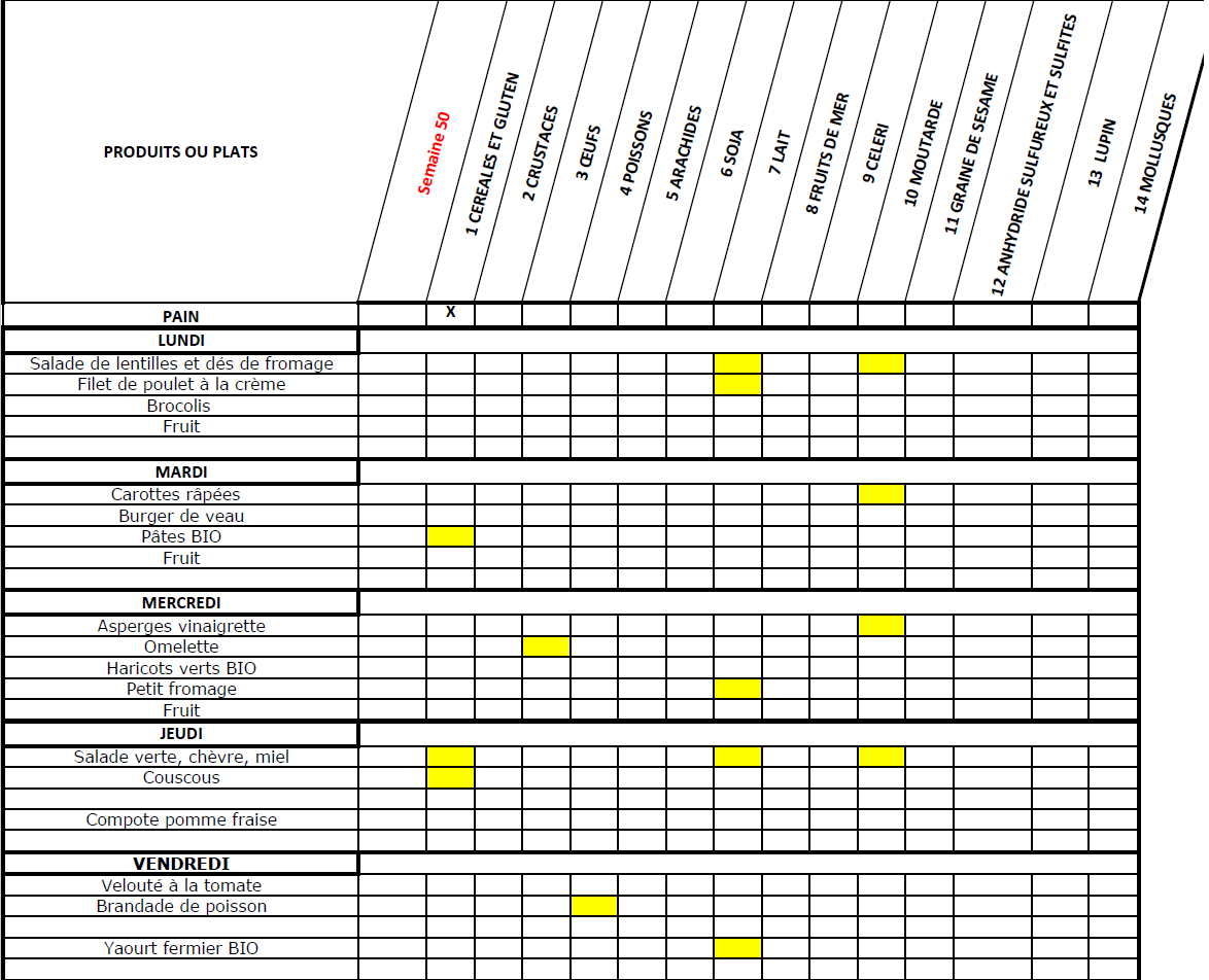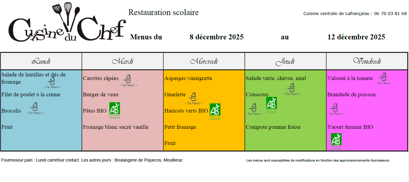 MENUS CANTINE