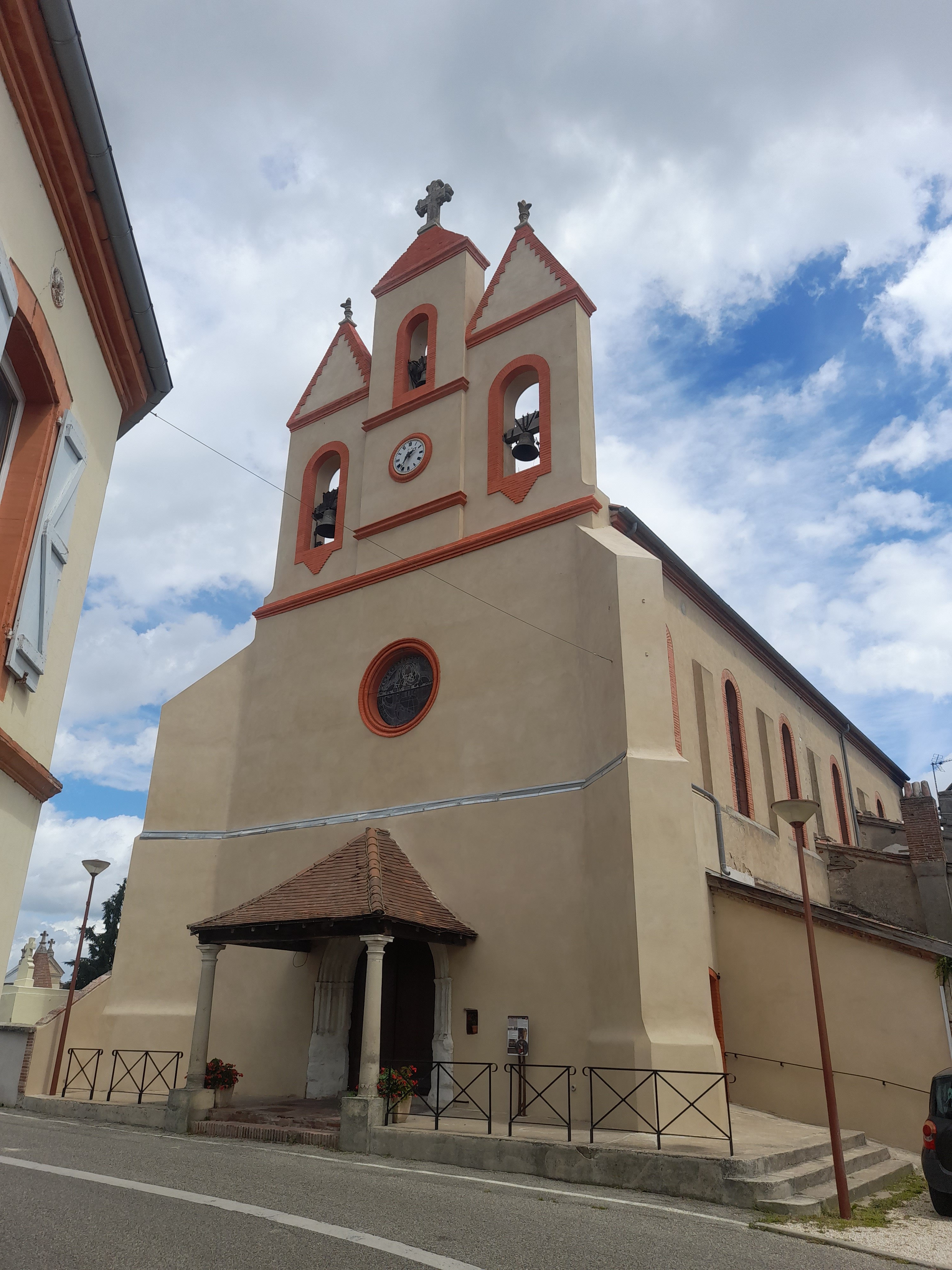 De l’autre côté de la place de la République se trouve l’église Saint-Georges. Le monument actuel, qui date de la fin du XIXe siècle et a été construit en style néo-gothique, a été érigé sur l’emplacement d’une église primitive du XVe siècle, déjà reconstruite au XVIIe siècle. Il conserve de très beaux vitraux historiés et plusieurs éléments de mobilier liturgique ancien.